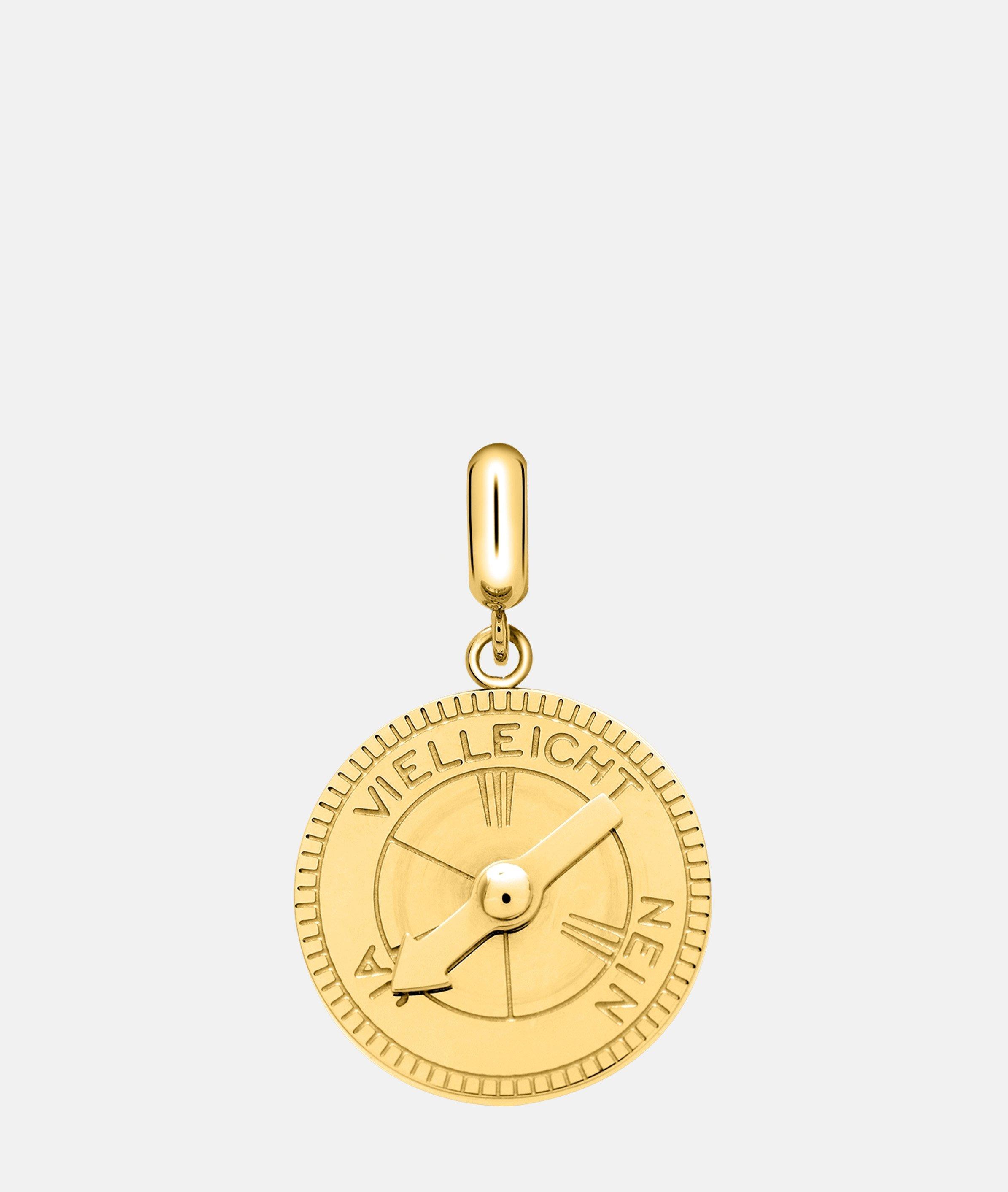 Dieser Anhänger mit den Worten Ja, Nein und Vielleicht ist ein echter Hingucker. Der drehbare Pfeil lädt dazu ein, spielerisch Entscheidungen zu treffen – oder einfach für einen kleinen Moment Spaß zu haben. Ein originelles Schmuckstück, das nicht nur deinen Look bereichert, sondern dich auch daran erinnert, wie viel Freude die kleinen Wahlmöglichkeiten des Alltags bringen können.