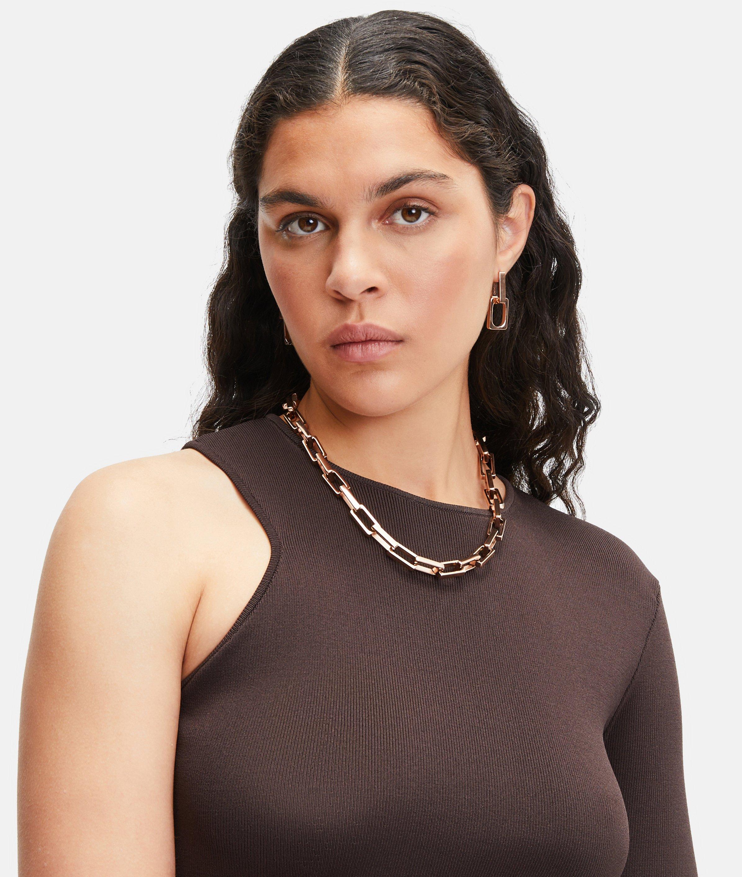 Die ausdrucksstarke , grafische Formensprache kreiert einen einzigartigen Look. Die Halskette besteht aus Edelstahl und bietet trotz großer Kettenglieder besten Tragekomfort. Ob im Office oder in einem angesagten Club: Gepaart mit der extravaganter Optik veredelt dieser Halsschmuck deinen individuellen Style.