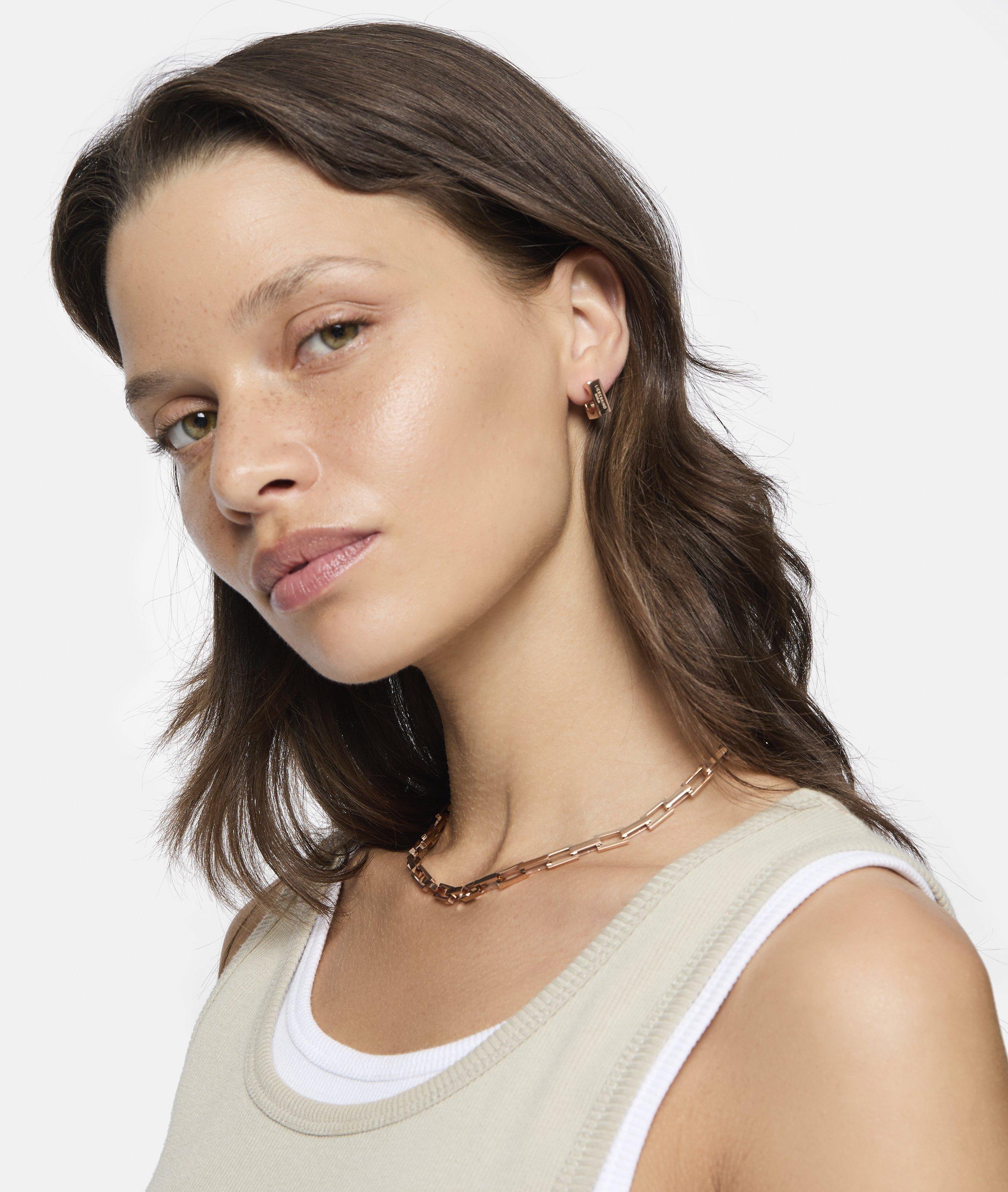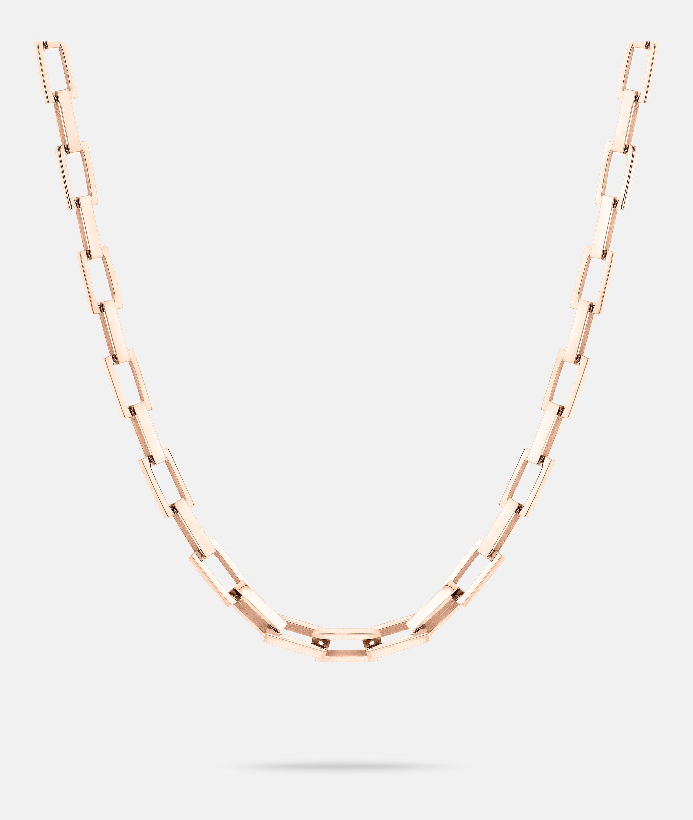 Diese Halskette mit rechteckigen, groben Gliedern verkörpert kraftvolle Eleganz. Ihre markanten Details verleihen jedem Outfit eine unverwechselbare Note. Ob einzeln getragen oder kombiniert mit anderen Pieces – diese Statement-Kette steht für selbstbewussten Style.