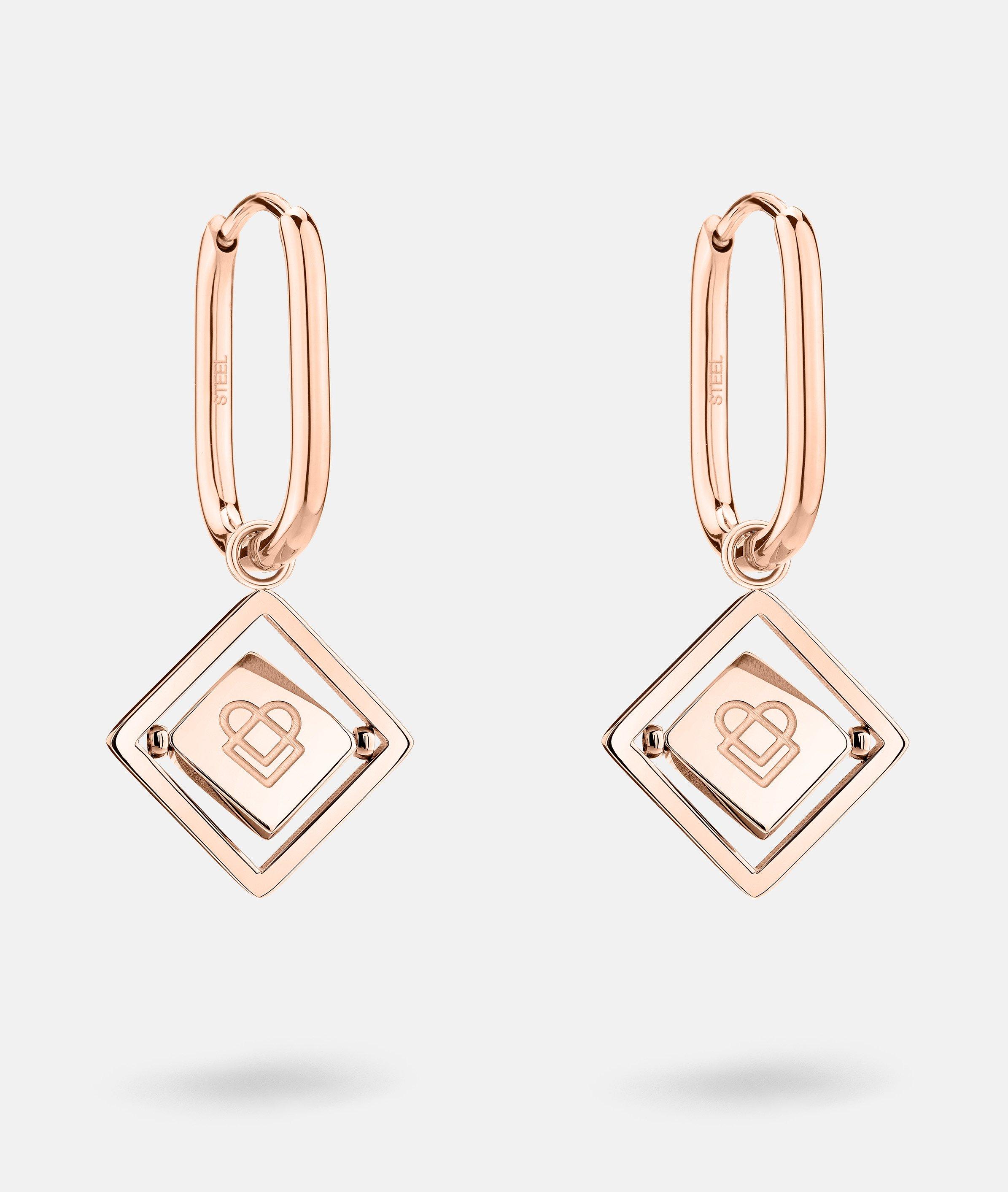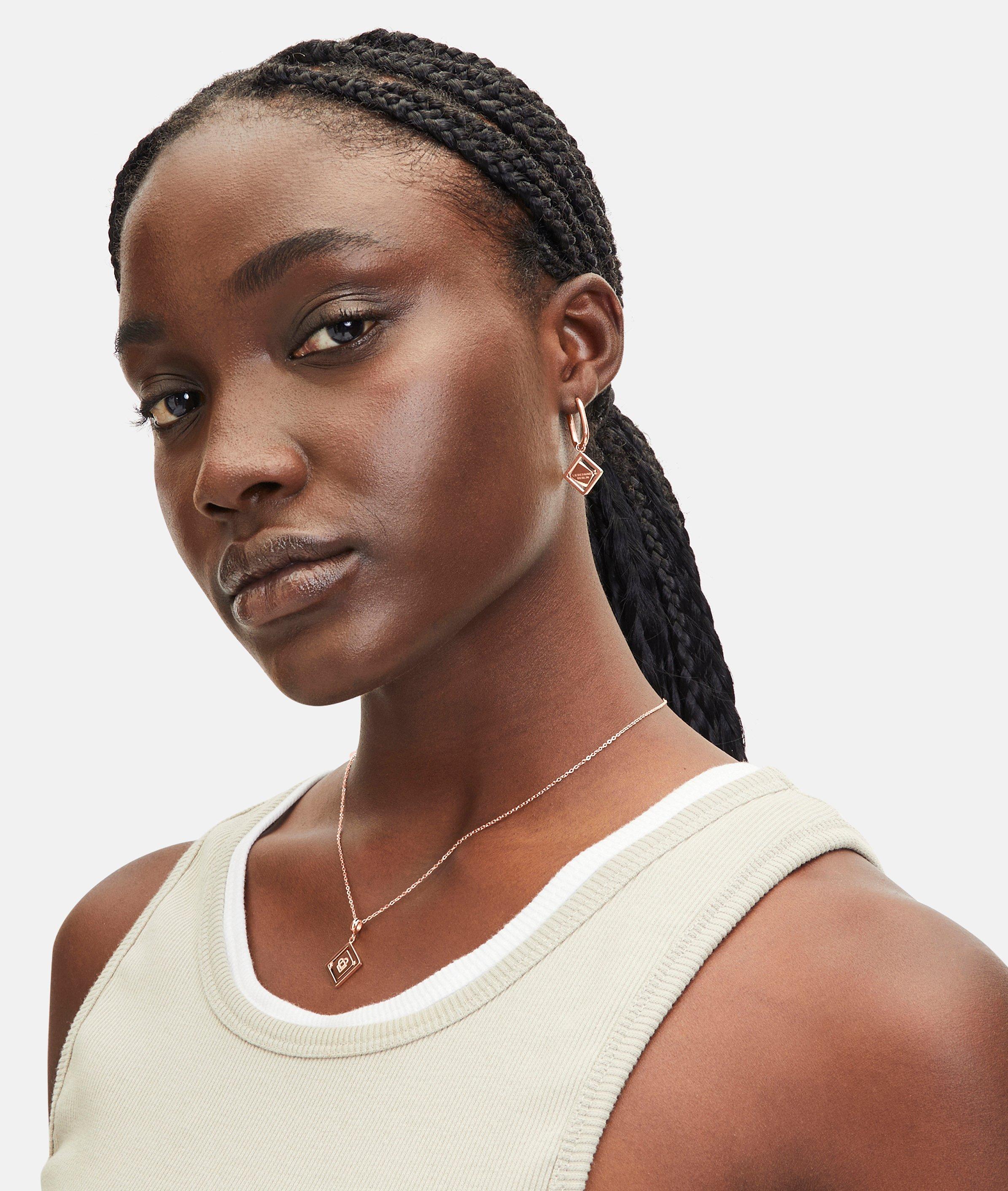 Der rechteckige Anhänger an dieser Creole lässt sich drehen und ist ein echtes Highlight: der mittlere Teil ist mit dem LIEBESKIND BERLIN Schriftzug versehen, die andere Seite ist mit dem Icon graviert. Der Anhänger lässt sich aushängen – so kann die Creole auch als Basic getragen werden. Egal, ob einzeln getragen oder mit anderen Ohrringen aus unserer Kollektion kombiniert: dieses Schmuckstück rundet jeden Look ab. Erhältlich in den Farben Silber und Gold.