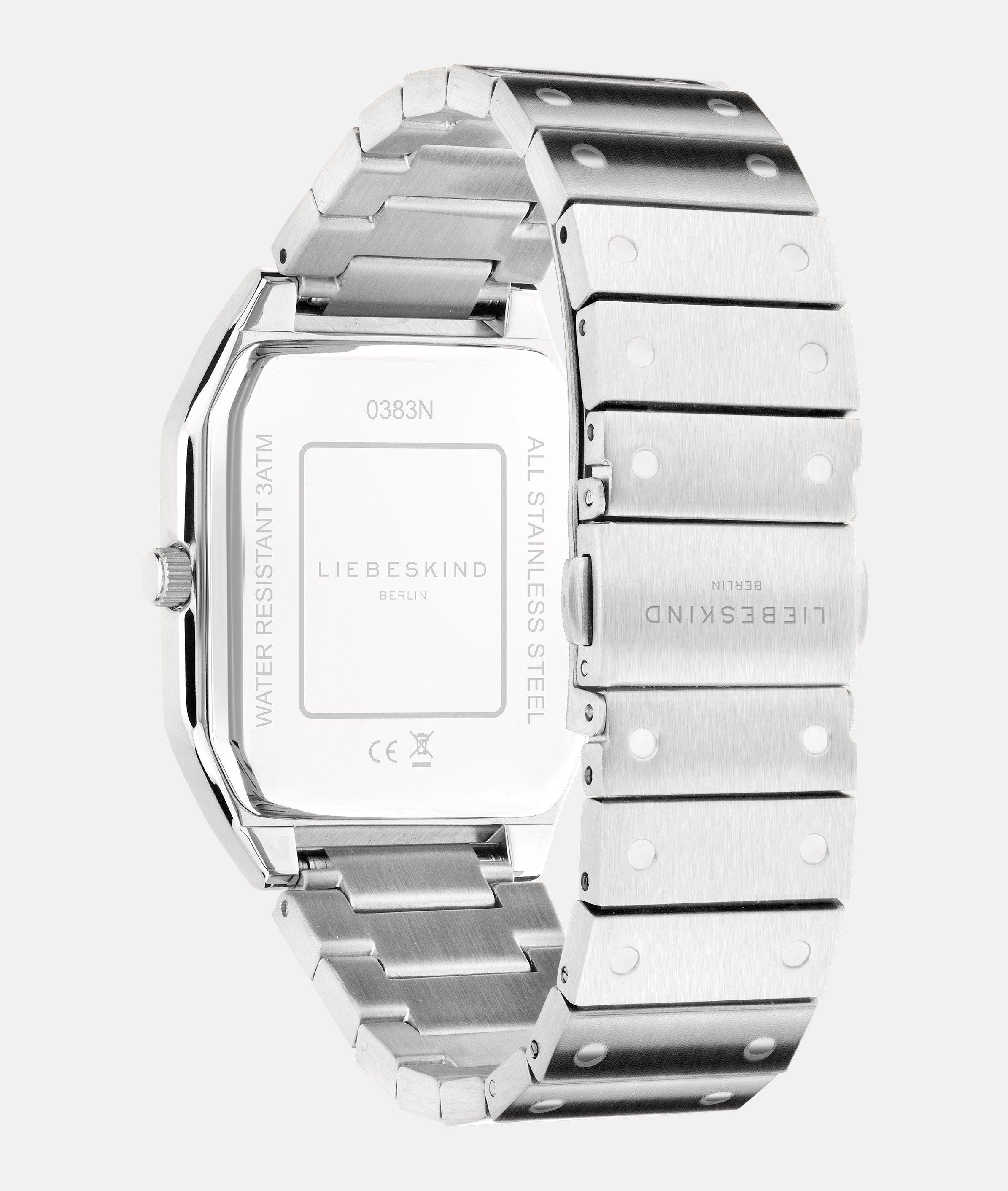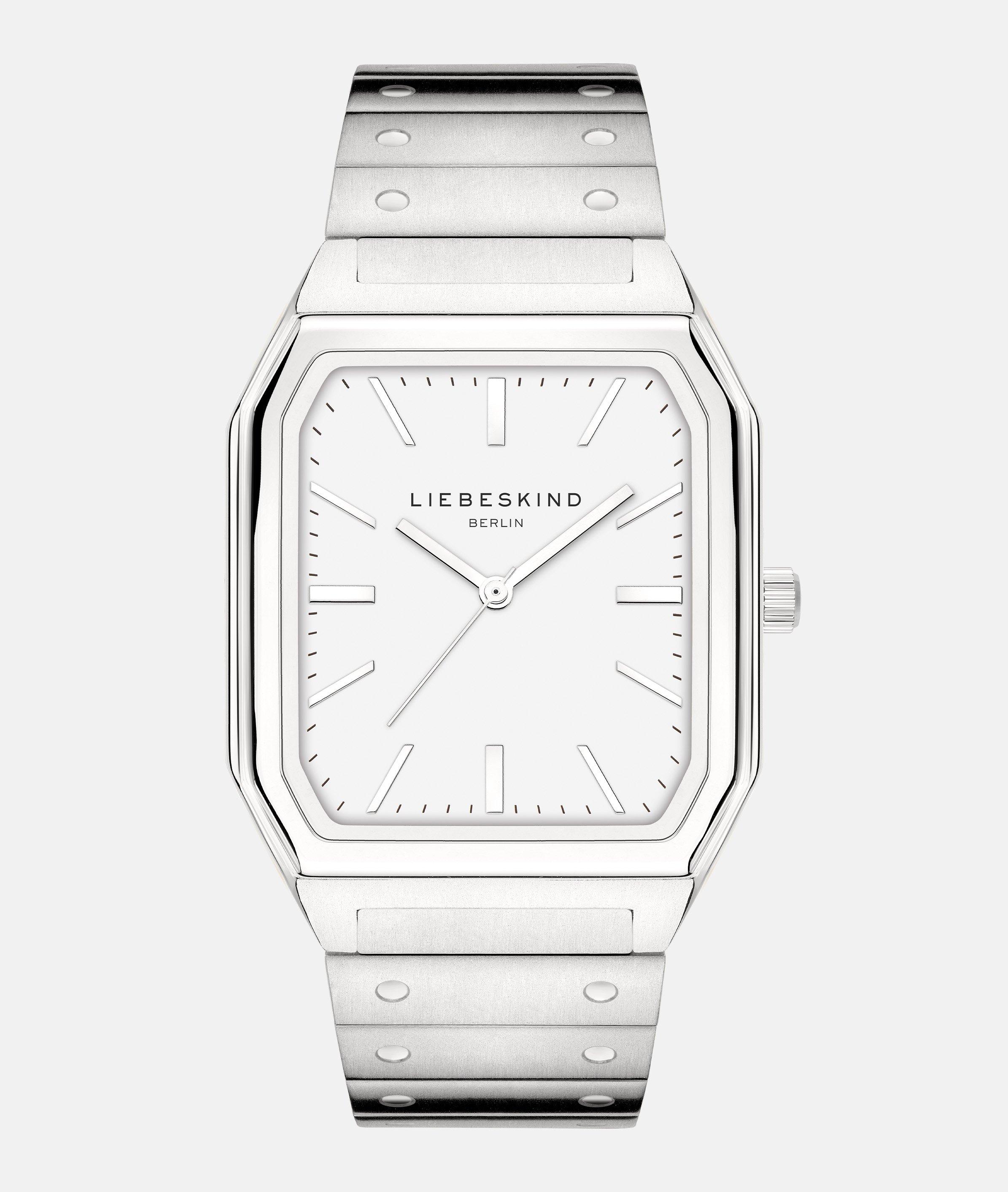 Diese LIEBESKIND BERLIN Edelstahluhr ist ein zeitloses Meisterwerk mit eckigem Gehäuse und markanten Nietenverzierungen. Das hochwertige Edelstahlmaterial und das präzise Quarzwerk mit 3 ATM verschmelzen hier zu einem eleganten Accessoire. Diese Uhr ist mehr als nur ein Zeitmesser: Sie ist ein stilvolles Statement und ein vielseitiger Begleiter für jede Gelegenheit zugleich. Das Armband lässt sich anpassen und verleiht der Uhr eine einzigartige Mischung aus Eleganz und Coolness. Cool und lässig – ist diese LIEBESKIND Uhr ein echtes Statement am Handgelenk.